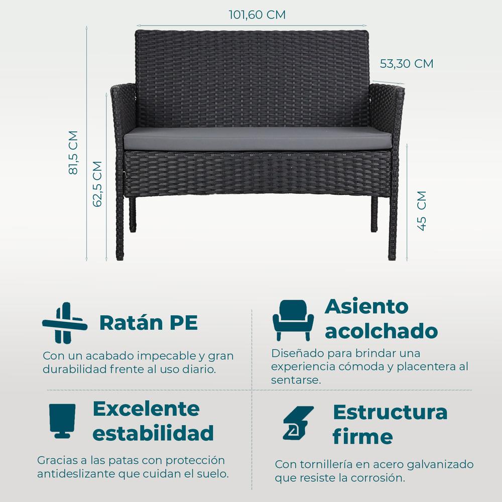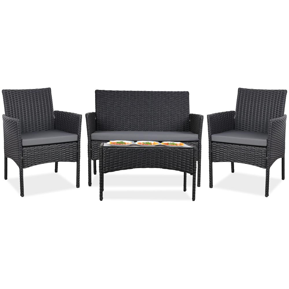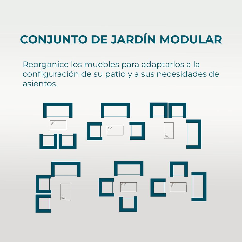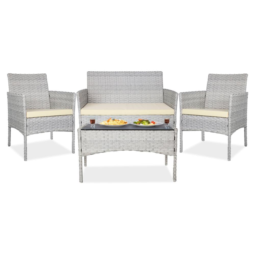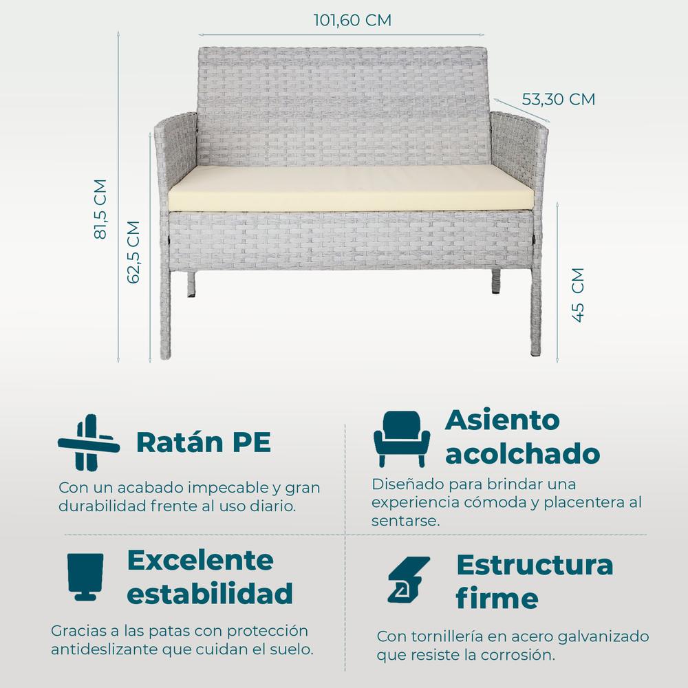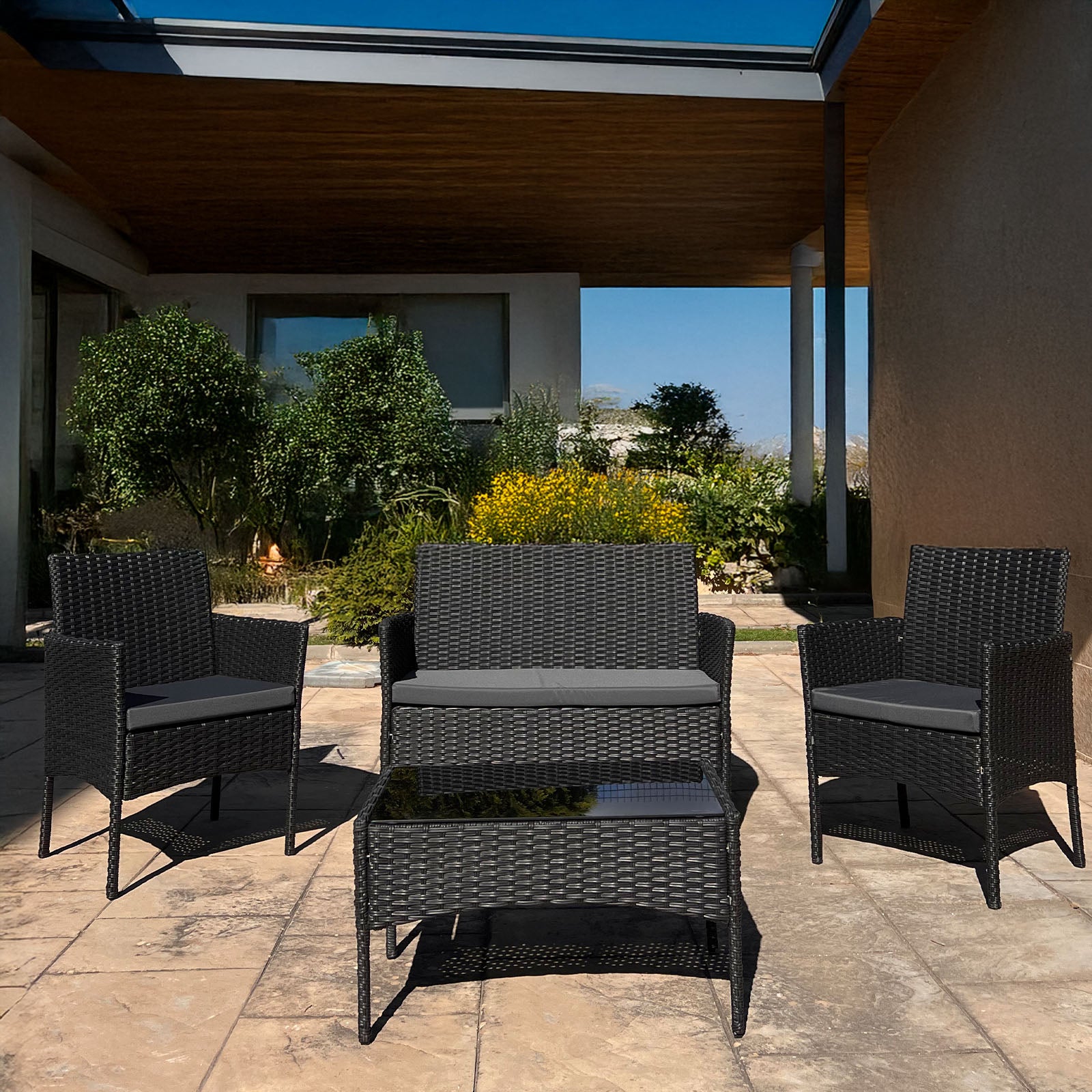 Conjunto de muebles de jardín de ratán, 4 plazas, disponible en tres colores.