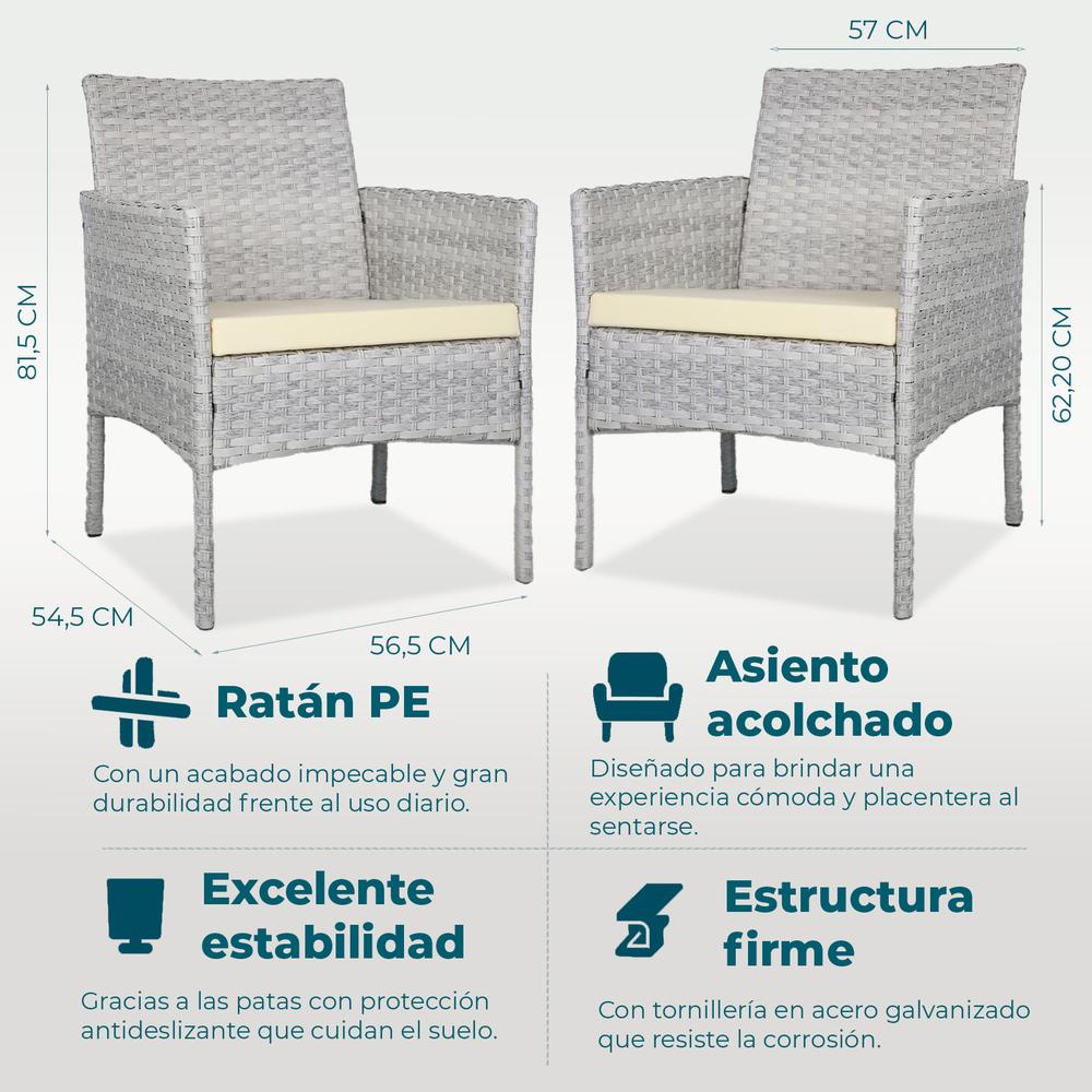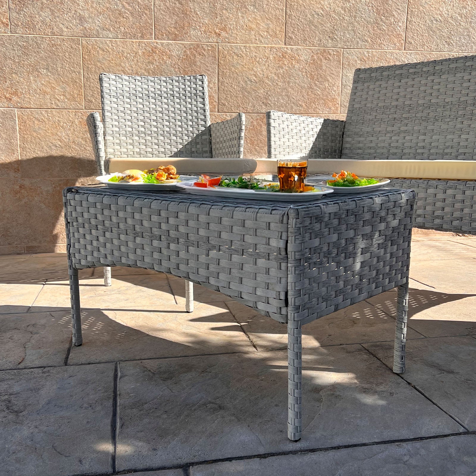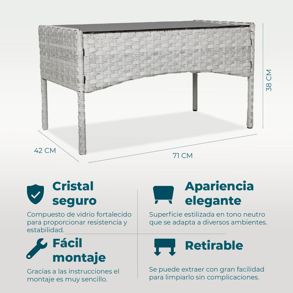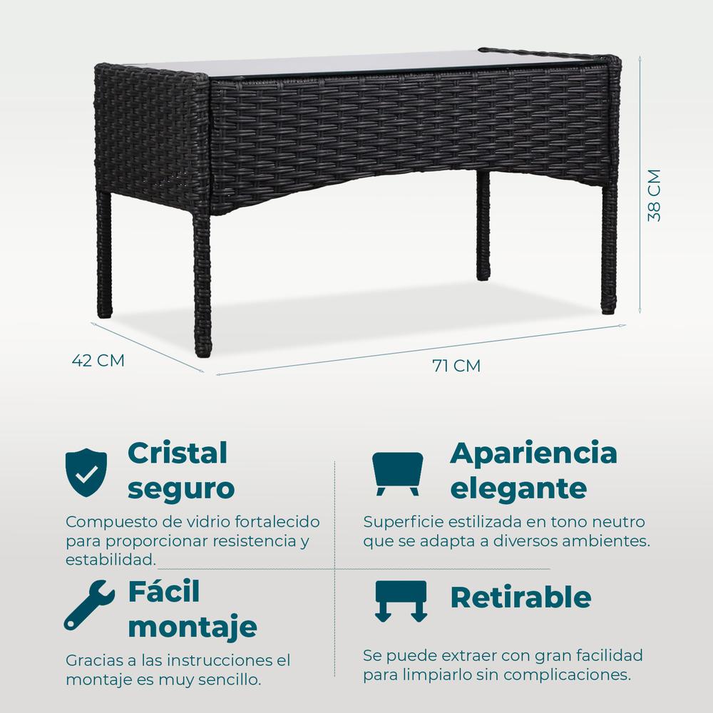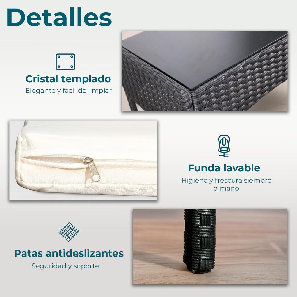 Conjunto de muebles de jardín de ratán, 4 plazas, disponible en tres colores.