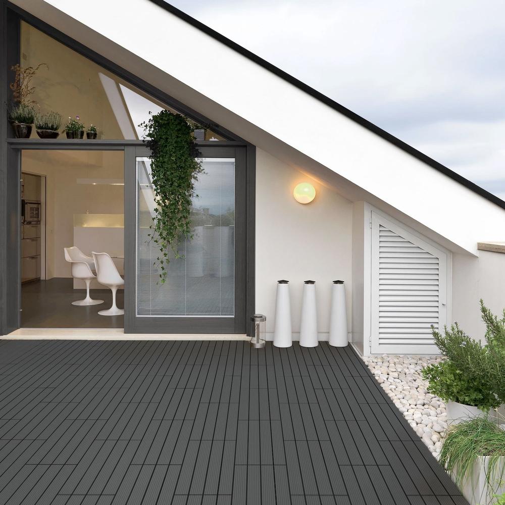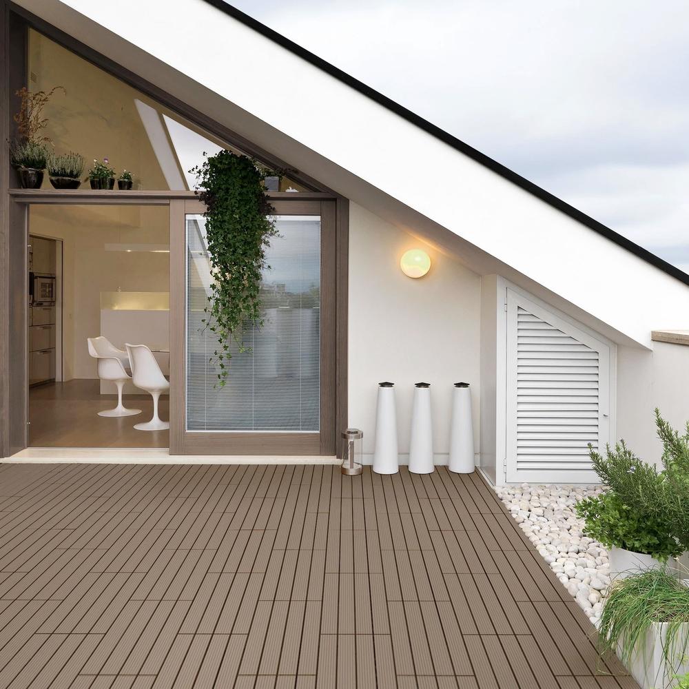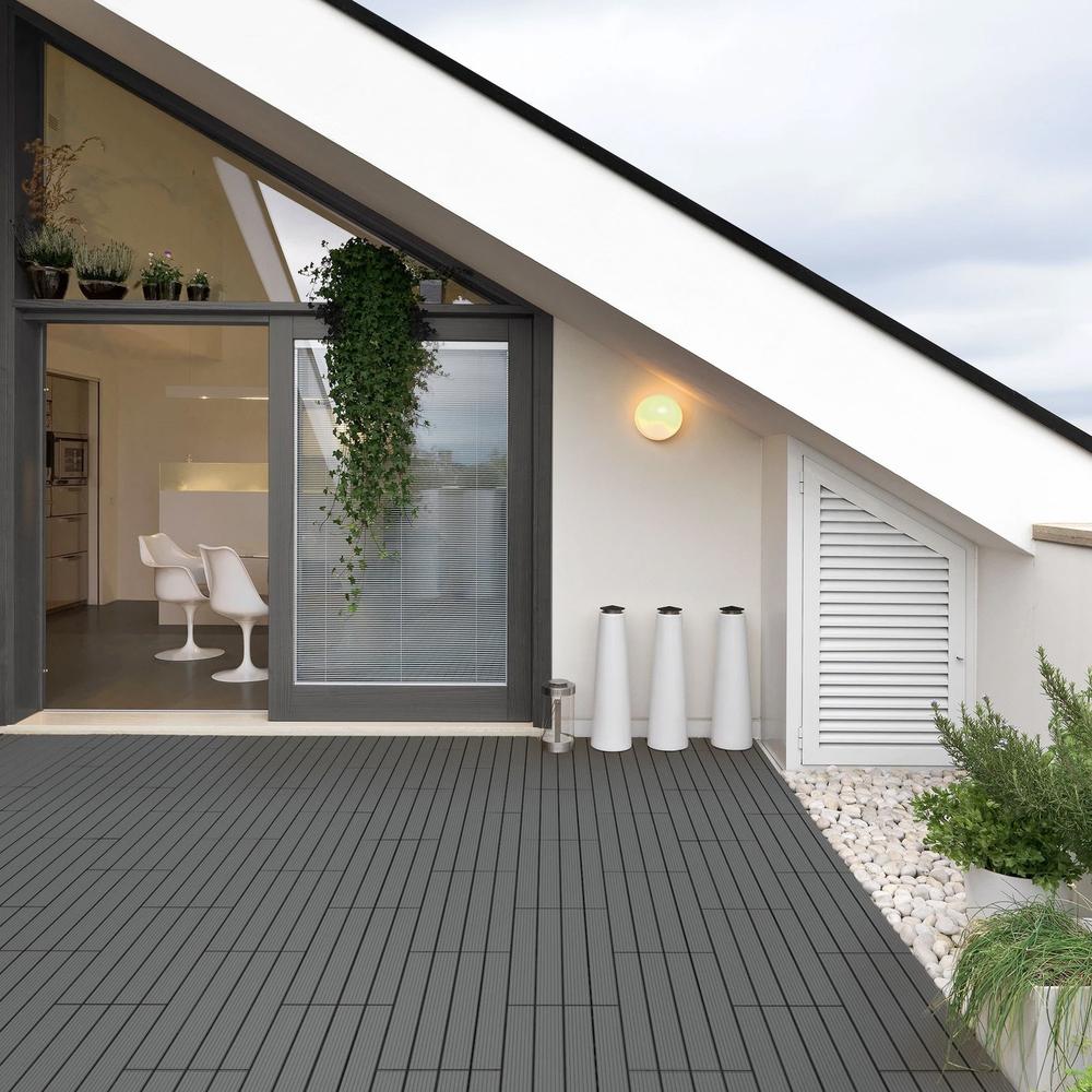 Las baldosas de WPC (compuesto de madera y plástico) combinan la belleza natural de la madera con la durabilidad del plástico, creando una superficie resistente a la intemperie y al agua. No se astillan, lo que los convierte en la opción perfecta para caminar descalzo, ofreciendo una experiencia cómoda y segura.