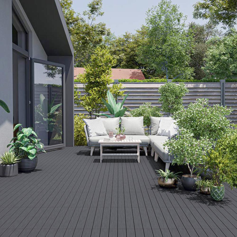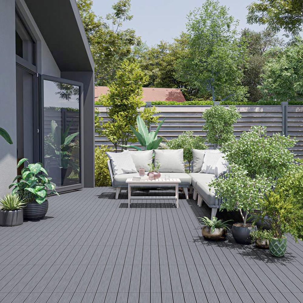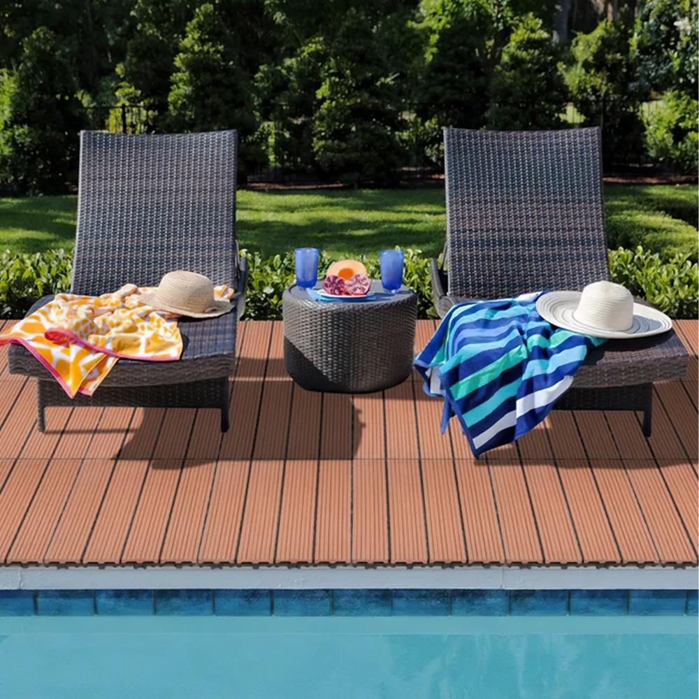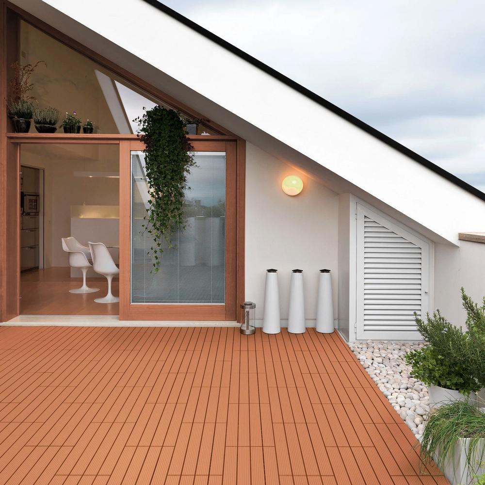 Las baldosas de WPC (compuesto de madera y plástico) combinan la belleza natural de la madera con la durabilidad del plástico, creando una superficie resistente a la intemperie y al agua. No se astillan, lo que los convierte en la opción perfecta para caminar descalzo, ofreciendo una experiencia cómoda y segura.
