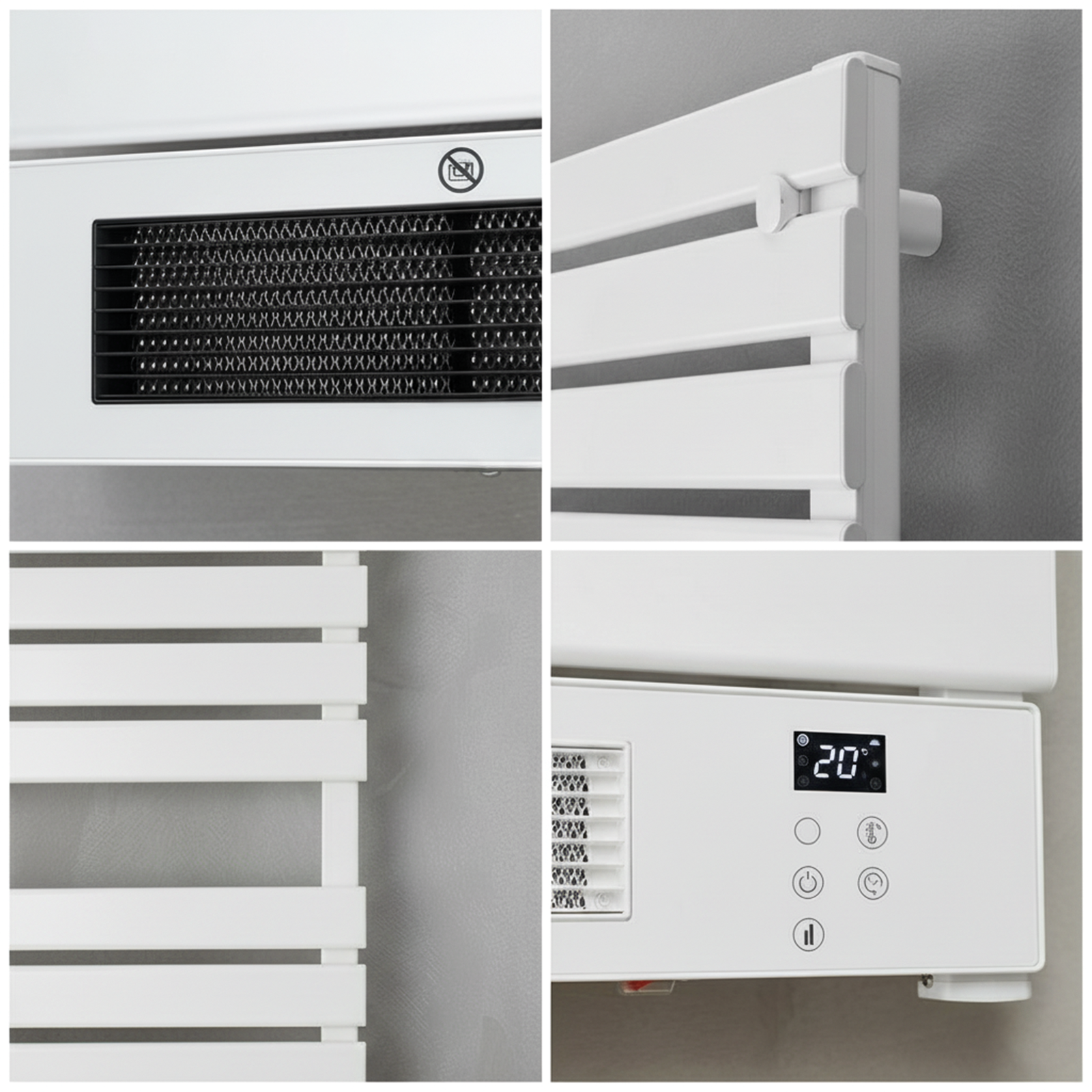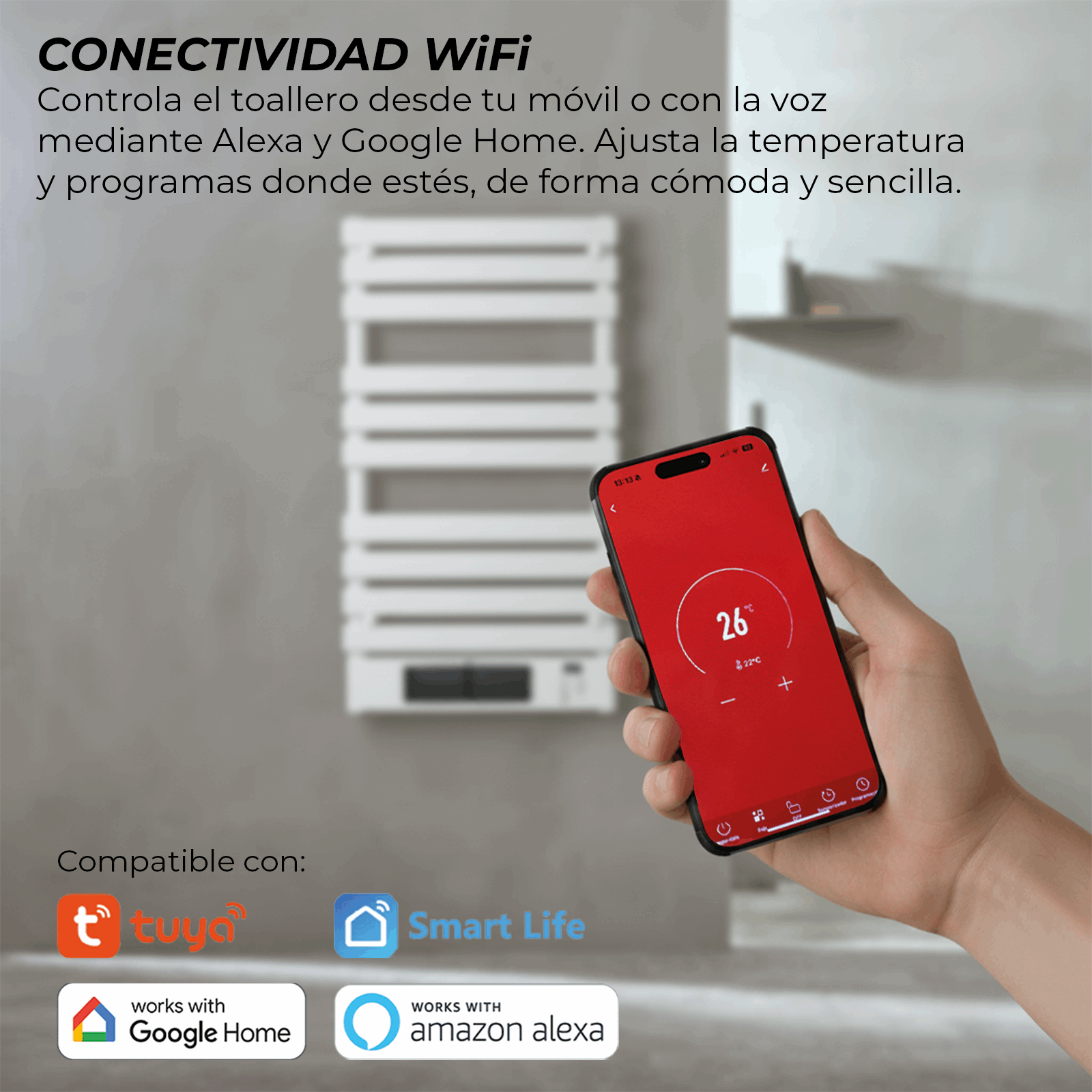 • Potencia total: 2000 W (500 W toallero + 1500 W calefactor)