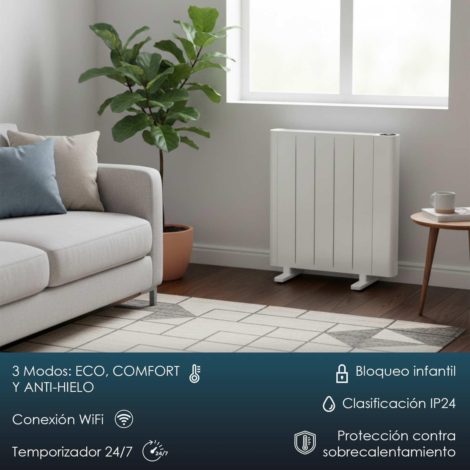 • Modos: ECO / Confort / Antihielo