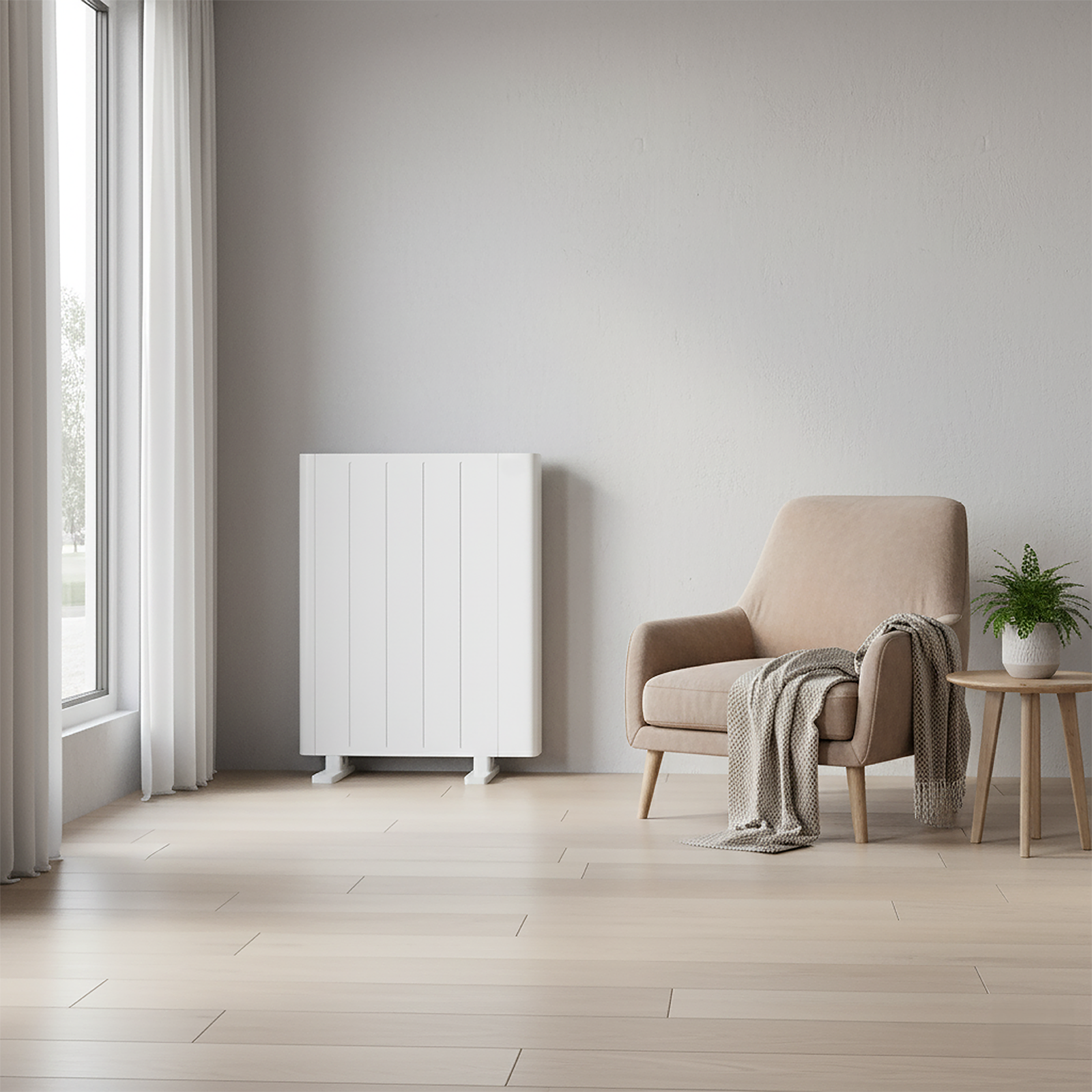 Con 7 elementos de aluminio de alta conductividad, cubre estancias de hasta 20 m², manteniendo una temperatura constante y precisa gracias al control electrónico TRIAC.