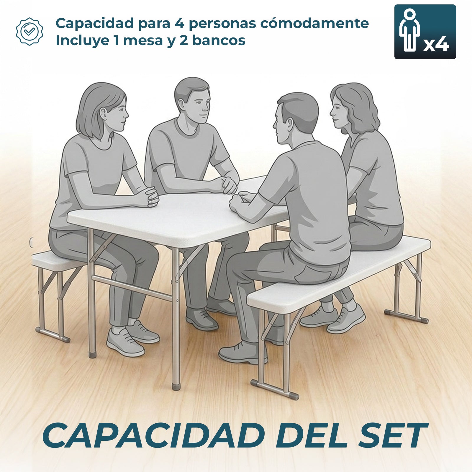 - Set completo con mesa y 2 bancos para 4 personas