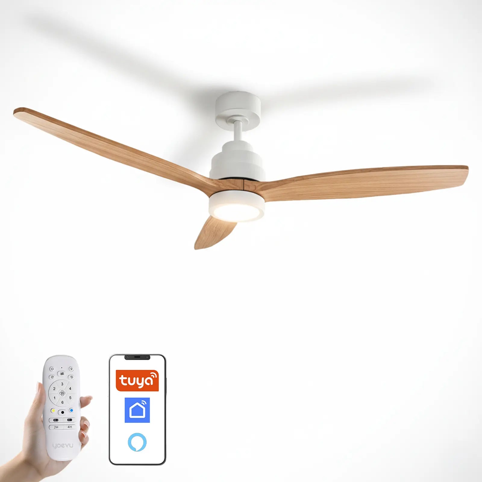 Ventilador de Techo Remo | Aspas de madera | Motor DC | 6 Velocidades | Compatible con Alexa y App | 132 cm de diámetro