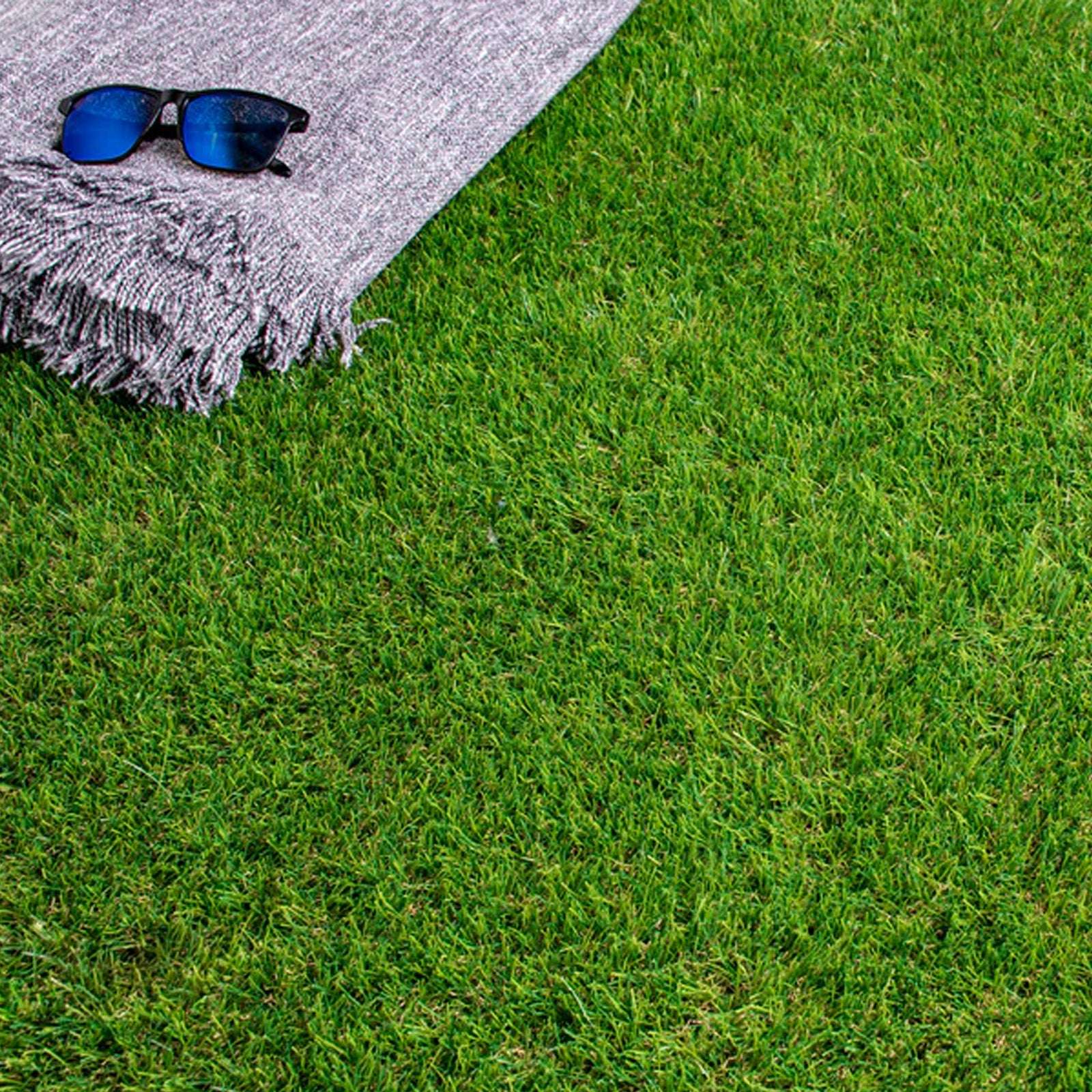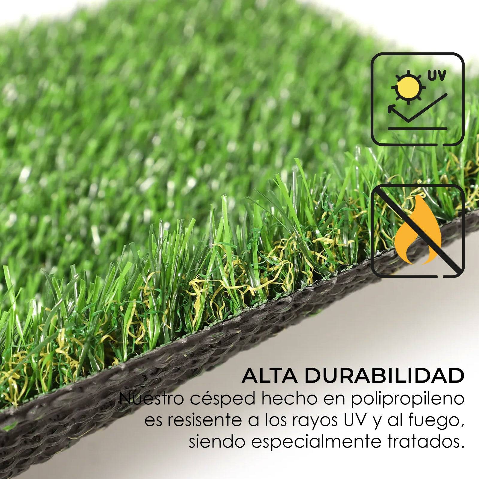 Con una altura de 20mm, este césped artificial equilibra comodidad y firmeza, proporcionando una superficie acolchonada y resistente. Fabricado con fibras de PE+PP monofilamento, mantiene su forma y color incluso en exteriores expuestos al sol.