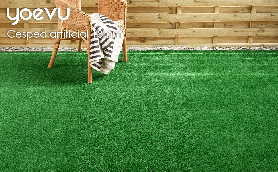Ideal para jardines, patios, balcones o incluso interiores, este césped artificial de 18 mm se adapta a cualquier superficie. Su diseño realista y suave transforma cualquier área en un ambiente acogedor y elegante.